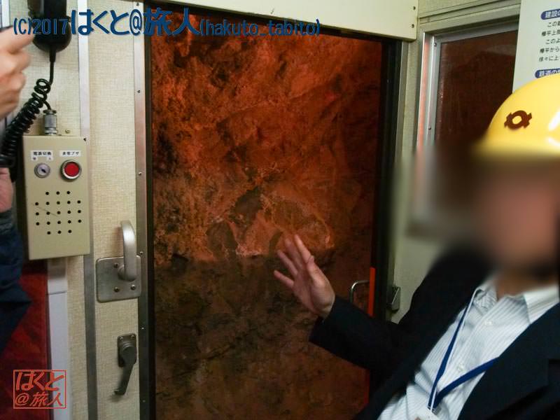 程なくして、高熱隧道部へ。ここで説明のために列車は低速し、扉を開けての説明。
