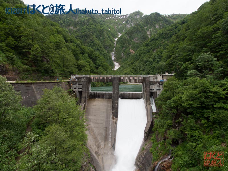 仙人谷ダム。このダムの建設のために、この軌道を建設した。戦後は黒四ダムまで延伸し、そちらの建設資材の輸送にも使われた。