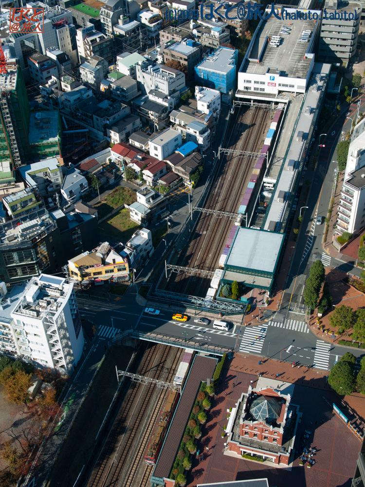 都心は何かと障害物とかあって沿線での撮影が難しいわけですが、ちょっと視点を変えて上から撮影できないものかと思ったのがこのカットです。