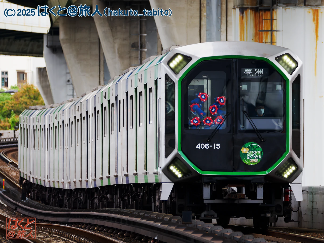 ミャクミャク様がへばりついた400系 OM SYSTEM OM-1 M.Zuiko Digital 100-400mm/f5.0-6.3 IS 2025.10.3 大阪メトロ 中央線 朝潮橋 秋の撮影, 路線別(私鉄) 大阪メトロ いらっしゃいませ(大阪万博にて) エキスポライナーと関空・紀州路快速(野田にて) 関連記事 桜満開(西岸にて) あべのハルカスと阪堺電気軌道(阿倍野にて) 山陰放送クイズトレイン(倉吉にて) 惜別(蚊爪にて) 湯乃鷺駅の春(西岸にて) 「サロンカーなにわ」を撮影してみた(須磨にて) 国鉄風駅名表示板と観光急行(直江津にて) 秋のトワイライトエクスプレス(鳩原にて)